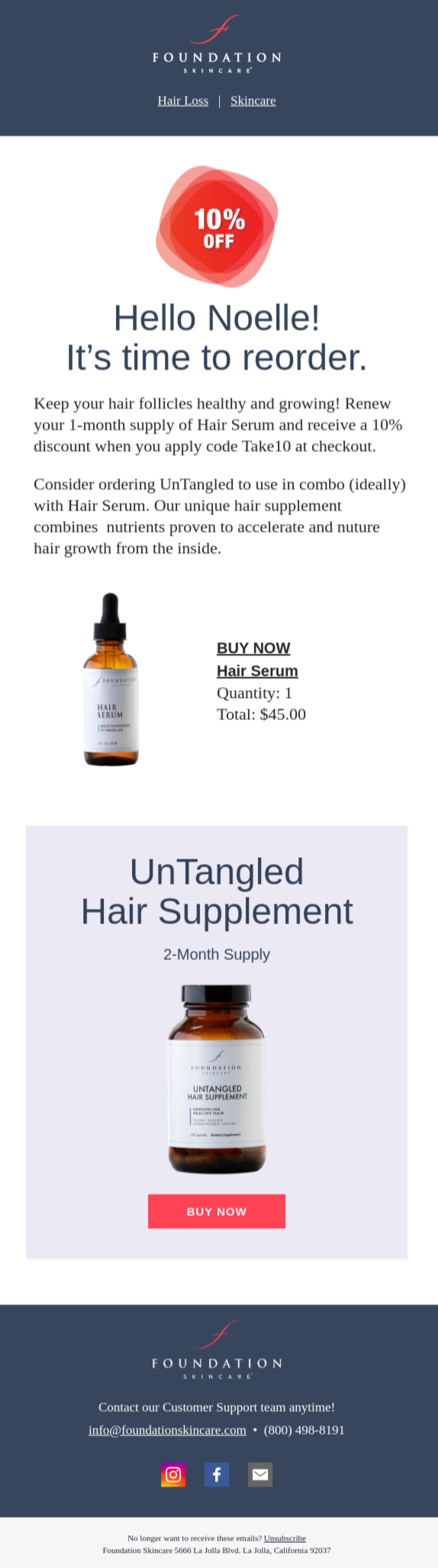 For shoppers who buy the same product more than once, send content letting them know that subscriptions are an easy alternative so they don’t have to remember to keep placing orders.