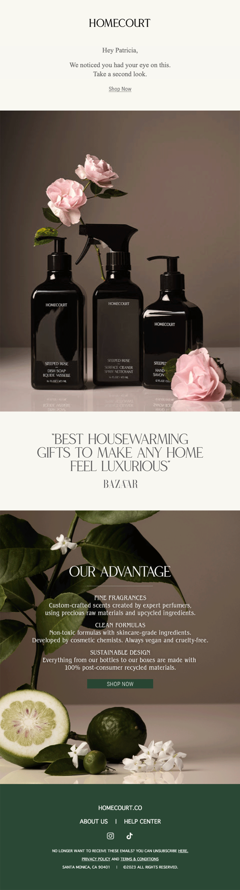 For those that browse the site but don’t visit specific product pages, you can send an overview of your best sellers and categories that reiterates your key value proposition and encourages them to check out your products further.